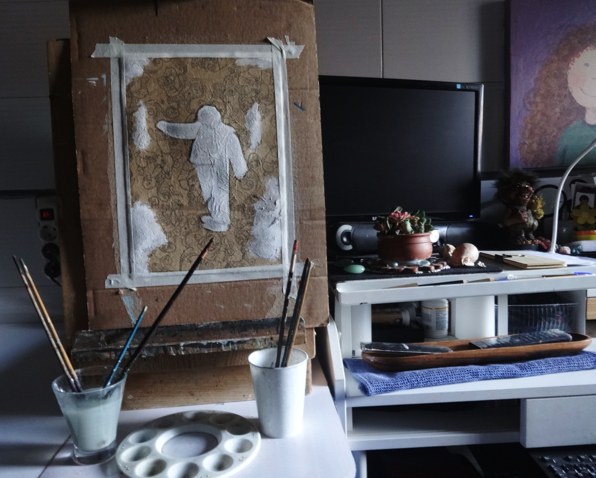 Y una cosa me fue acercando a la otra. Yo seguía buscando trabajo y cobrando recibos. Entonces, el Gobierno Vasco, por medio del INEM, organizó cursos de formación profesional remunerados y me presenté animada. Realicé el examen de acceso para el de Escenografía, ya que uno de sus requisitos era saber algo de pintar, pensé que era interesante la oferta y que con ella podría seguir aprendiendo a hacer más cosas mientras me pagaban. Así es cómo llegué a la casa de oficios y posteriormente a trabajar en el teatro. Prácticamente, lo que sé de pintar, lo aprendí en el proceso de ir buscando un trabajo del que vivir. No soy una licenciada en Bellas Artes, no puedo sentarme y hablar con entendidos sobre pintura como una erudita, y no sé si lo hago bien, pero he vuelto a sentir el placer que da ponerme frente a un lienzo mientras me pierdo entre líneas, formas y colores. Todo lo demás me sobra, pues mi pretensión con todo aquello que hago es para sentirme feliz. Azucena Castillero. -